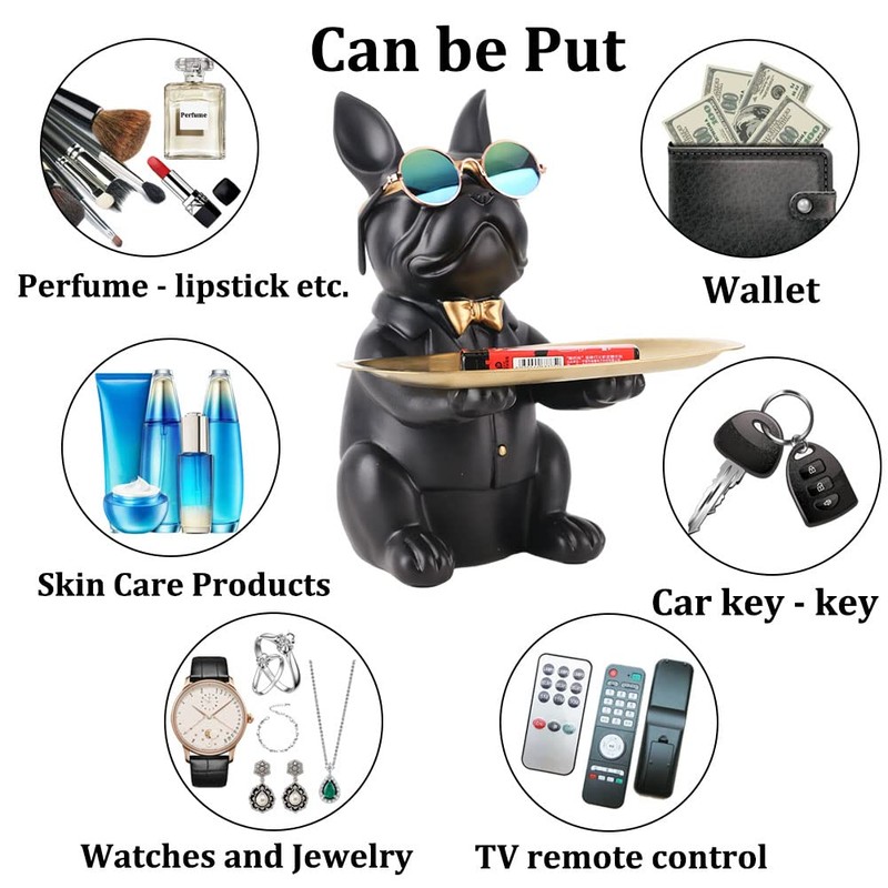 - 【Gift】French Bulldog Statue Holding Tray: add this adorable ornament to your house for decorative purposes or as a gift for your friends by giving them this cute bulldog statue tray that holds all their treasures. This tray is perfect for the home of any Bulldog lover. It can hold your favorite drinks and snacks as well as small items, and it's a cool thing to give this very stylized gift