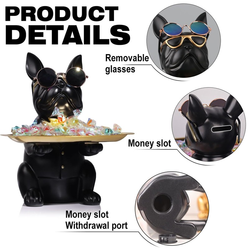 - 【Wide Range of Applications】Bulldog Decorative Tray: This bulldog statue tray is perfect for home, office, restaurant or bar. It has a hole on the back for children to store coins and develop a good habit of saving money. The Bulldog Statue Tray is also the perfect gift for any Bulldog lover. This bulldog statue holds a tray that can be filled with treats