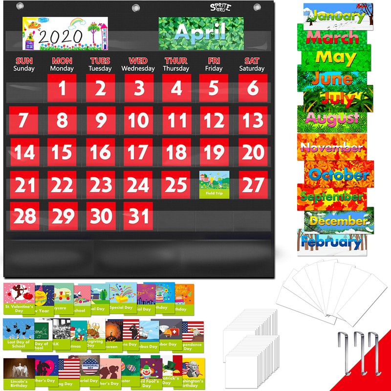 - Smart Design: Wall hanging Learning CALENDAR and Class Center pocket chart (22” X 20”) plus 32 customizable flash cards, 72 illustrated calendar and special event cards with vivid pictures. Bottom features 3 pockets for easy storage. Mountings ready. All these detailed features make it a perfect teaching aid.