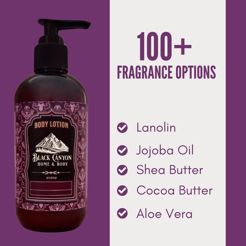 - Black Canyon Body Lotion is extra thick and creamy, with lanolin and jojoba oil to hydrate and condition your skin during and after application