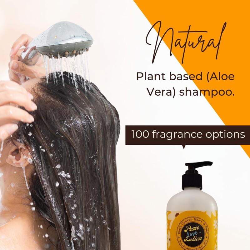 Black Canyon Home and Body Peace Love + Lotion Raspberry & Plum Blossom Scented Natural Hair Shampoo, 16 Oz (2 Pack)