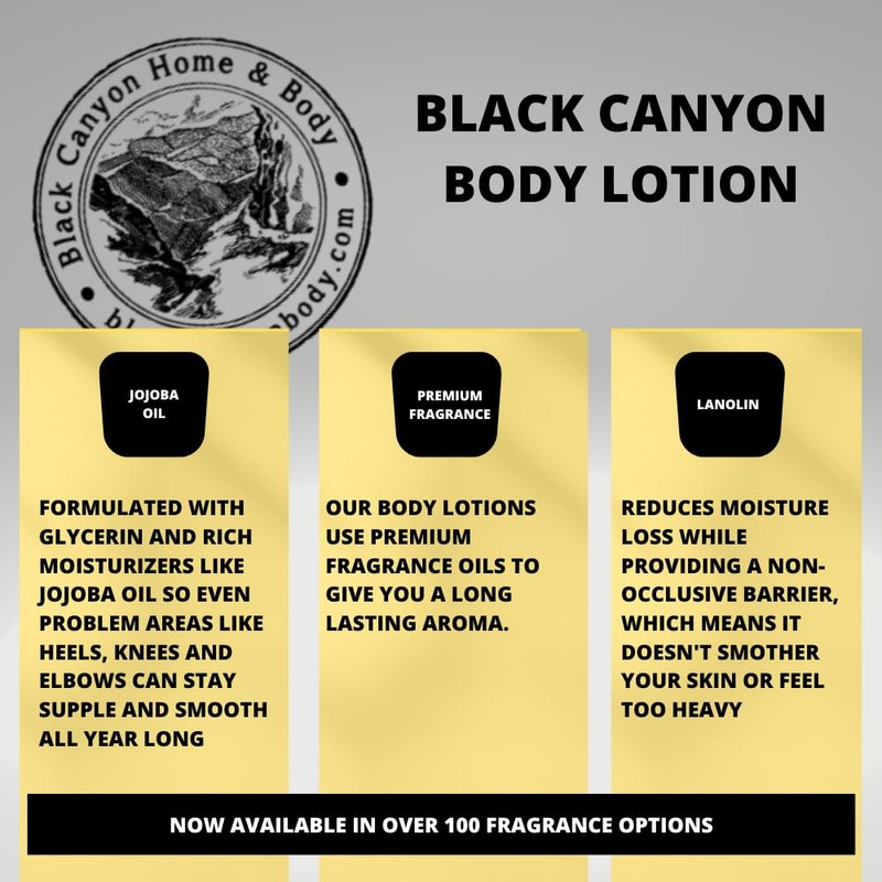 • Black Canyon Body Lotion is extra thick and creamy, with lanolin and jojoba oil to hydrate and condition your skin during and after application
