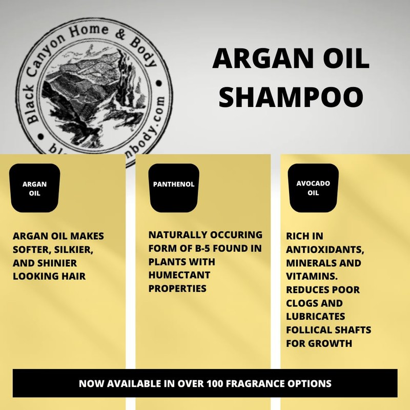 - Black Canyon Argan Oil Hair Shampoo hydrates while it cleans. Super thick formula adds shine and elasticity to hair.
