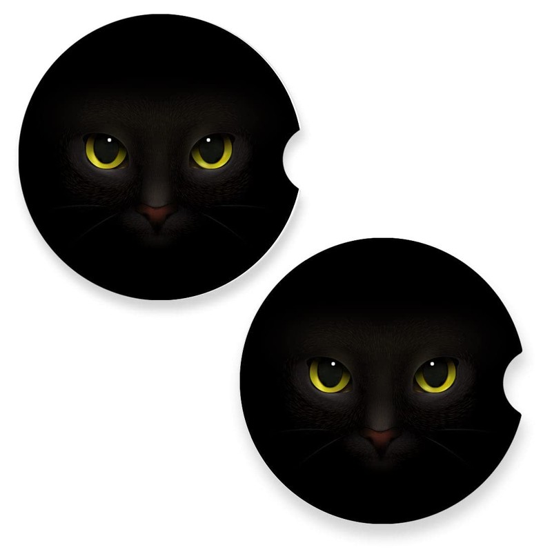 Black Cat Faces Car Coaster for Cup Holders 2.56" Ceramic Stone Drink Coaster, Set of 2 Pack