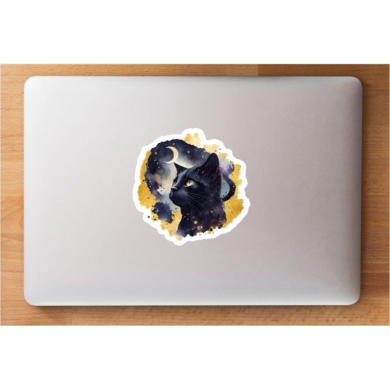 Black Cat Midnight Cosmic Gold Pattern Sticker Cute Unique Design Decal