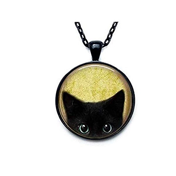 Black Cat Necklace - Peeking Black Cat Pendant - Cute Black Cat Jewelry