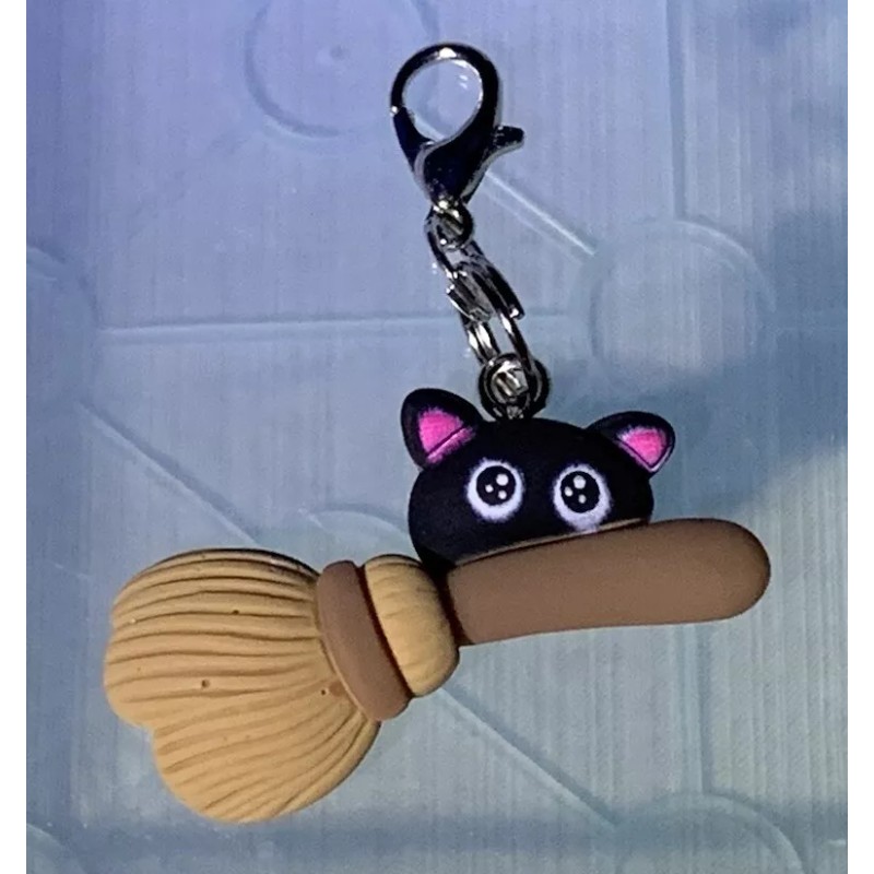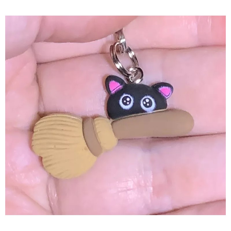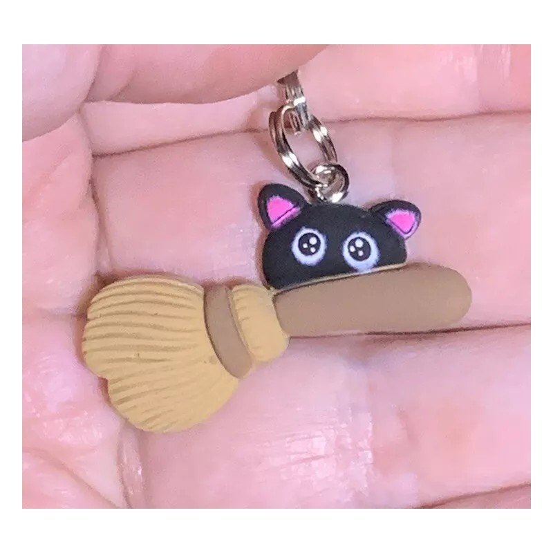 Black Cat On A Broom 🧹 Halloween Charm Zipper Pull & Keychain Add On Clip!