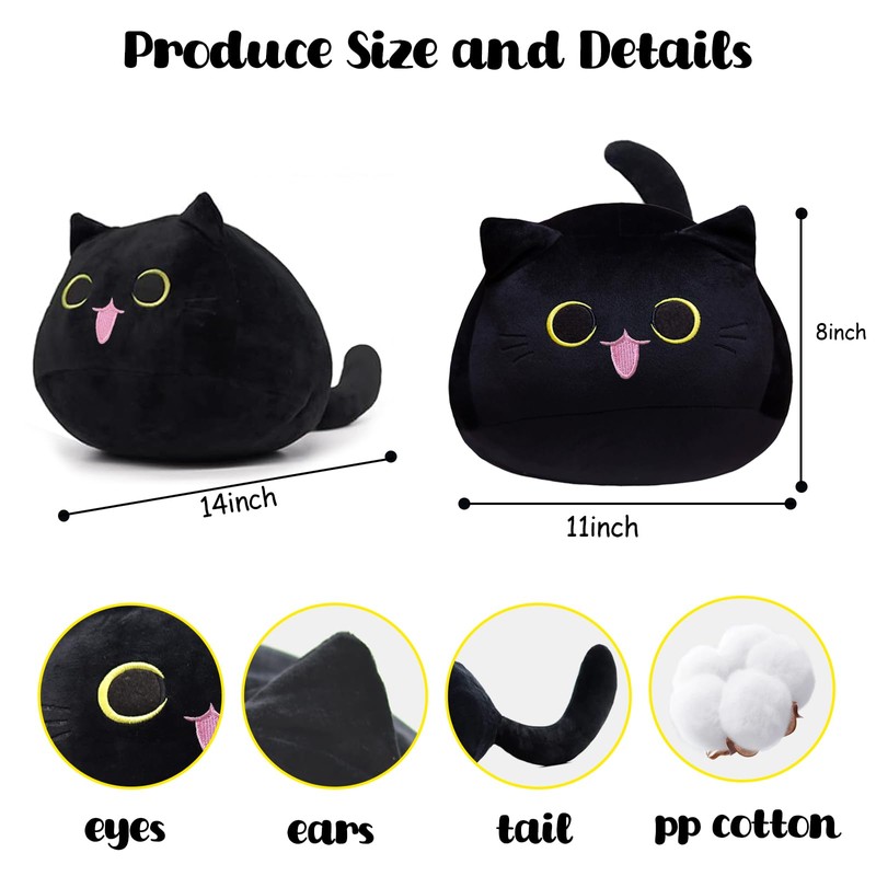 • 【High-Quality Material】Black cat plush is filled with 100% high-quality pp cotton and soft elastic fabric, no matter how you knead, pinch, pull, or press it, it will return to its original shape, ensuring the safety and softness of plush toys, giving you a soft and comfortable feeling.