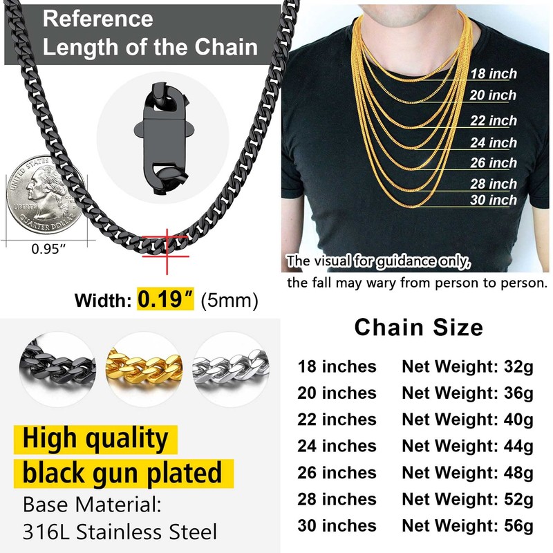• 【Stainless Steel Chain】The chain is made of stainless steel. Chain width: 5mm; Chain length: 22 inch