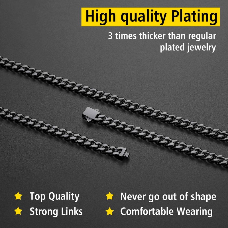 Black Chain Necklace for Men 22inch Black Cuban Link Chain