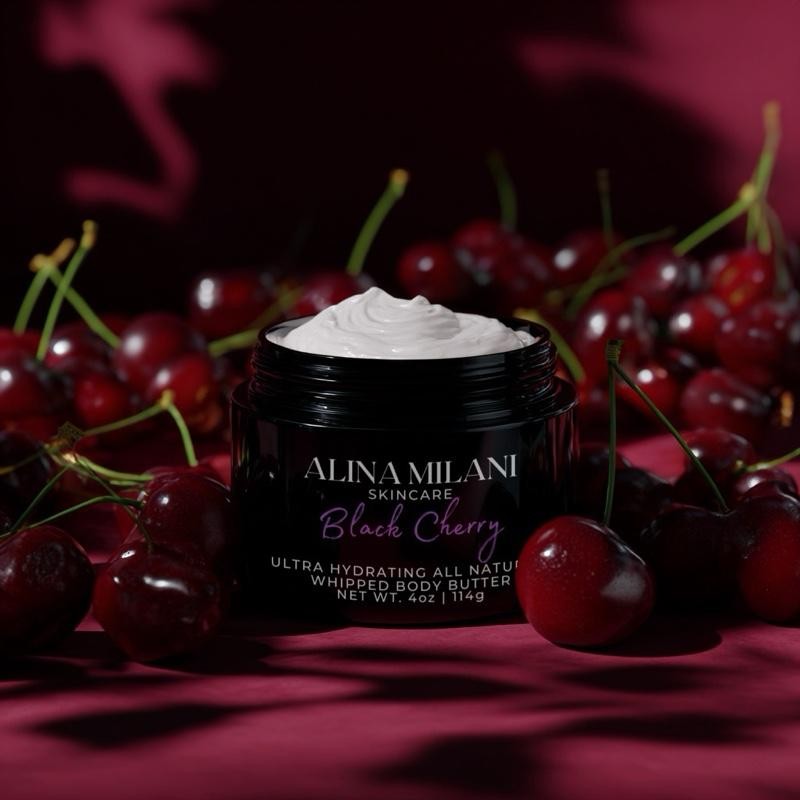 Indulge in the luxurious, deeply hydrating formula of Black Cherry Body Butter by Alina Milani. This rich and creamy body butter is designed to nourish and replenish dry skin, leaving it soft, smooth, and beautifully hydrated. Infused with a blend of organic Shea Butter, Mango Butter, and nourishing oils like Jojoba, Sweet Almond, and Grapeseed, this body butter melts into the skin, providing long-lasting moisture without any greasy residue.
