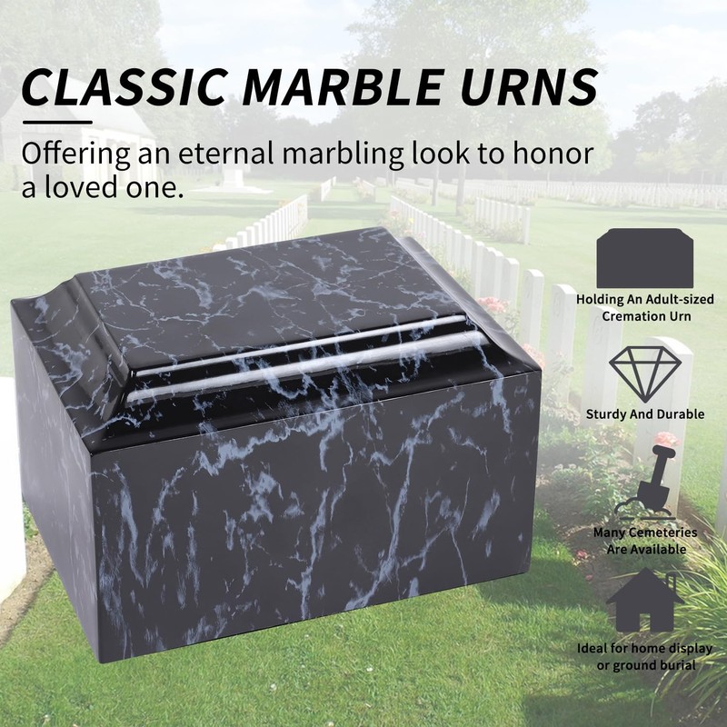 - High Quality Urn: This quality and elegant marble urn can be placed in your home or niche, which is also the best choice for ground burial. But you should always check to confirm cemetery regulations.
