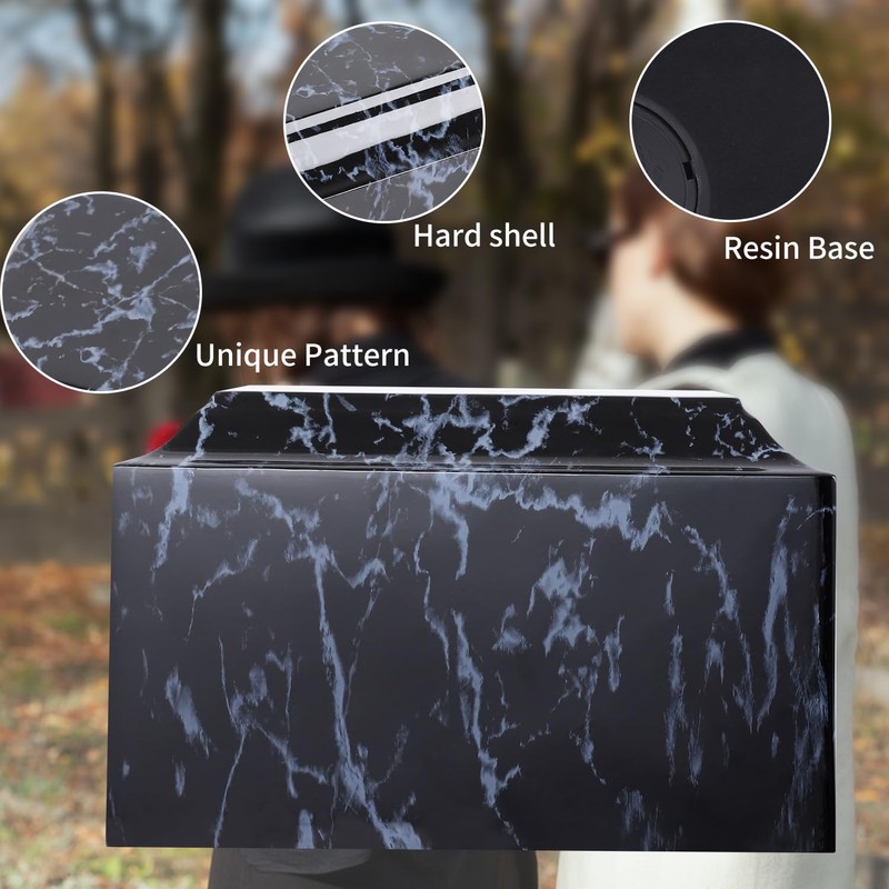 Black Classic Cultured Marble Cremation Urn for Adult Ashes, Adult Sized Memorial Urn for Ground Burial or Home Memorial