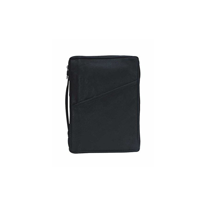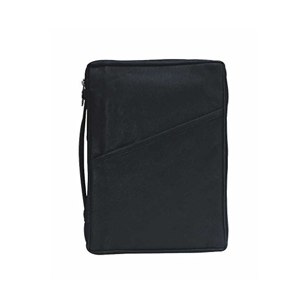- This large leather Bible cover features a front slash style pocket. Includes full zipper closure and handle.