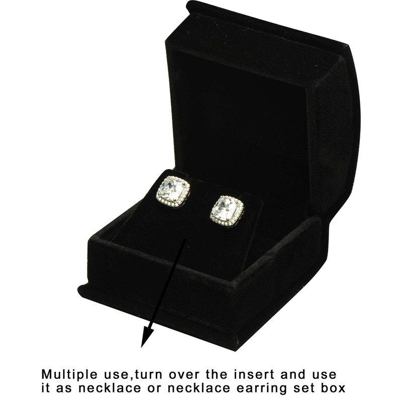 Black Color Luxury Velvet Multiple Use Earring Necklace Pendant Jewelry Gift Box for Wedding, Birthday, Valentine' Day, Mother's Day, Christmas...Comes with an Extra Individual White Packer Box Size