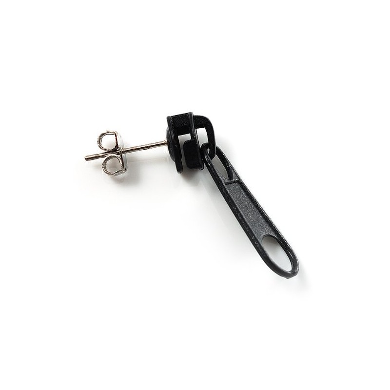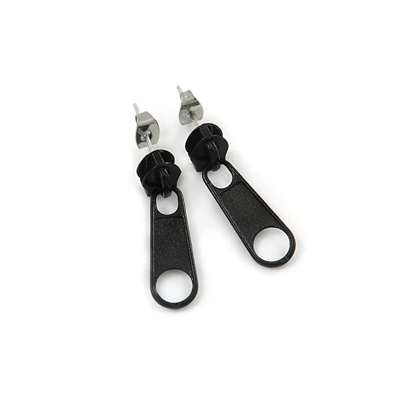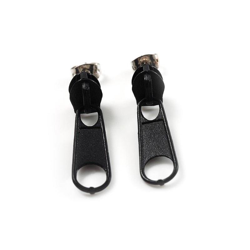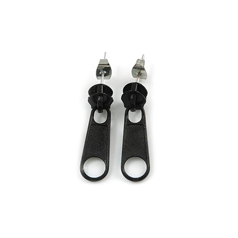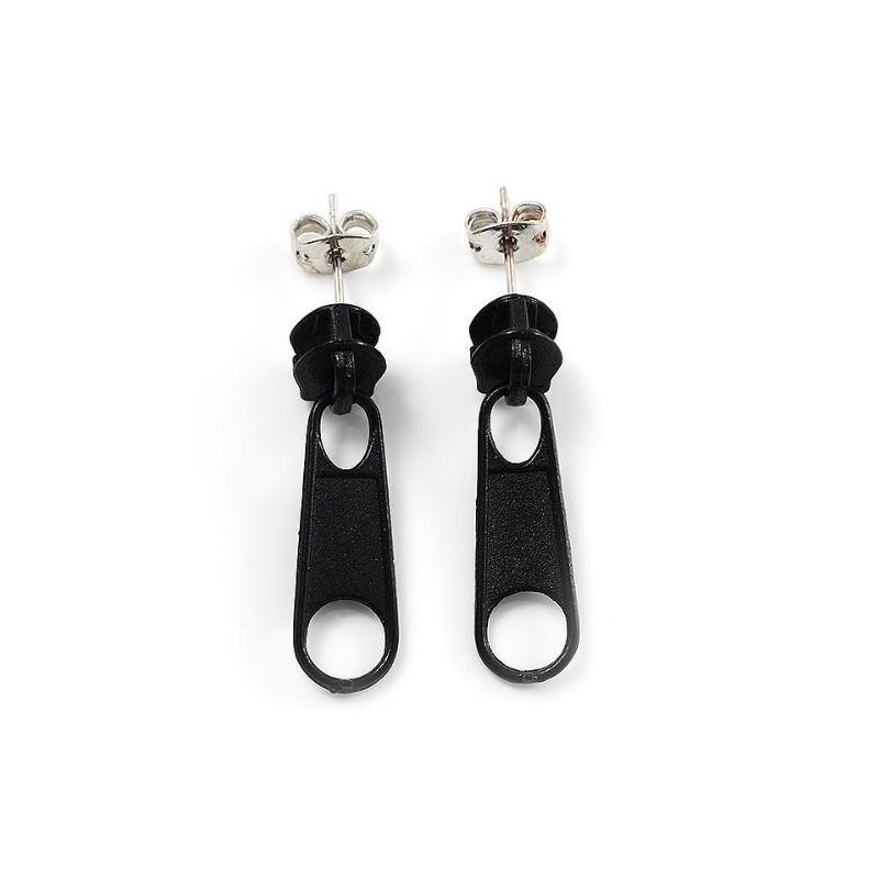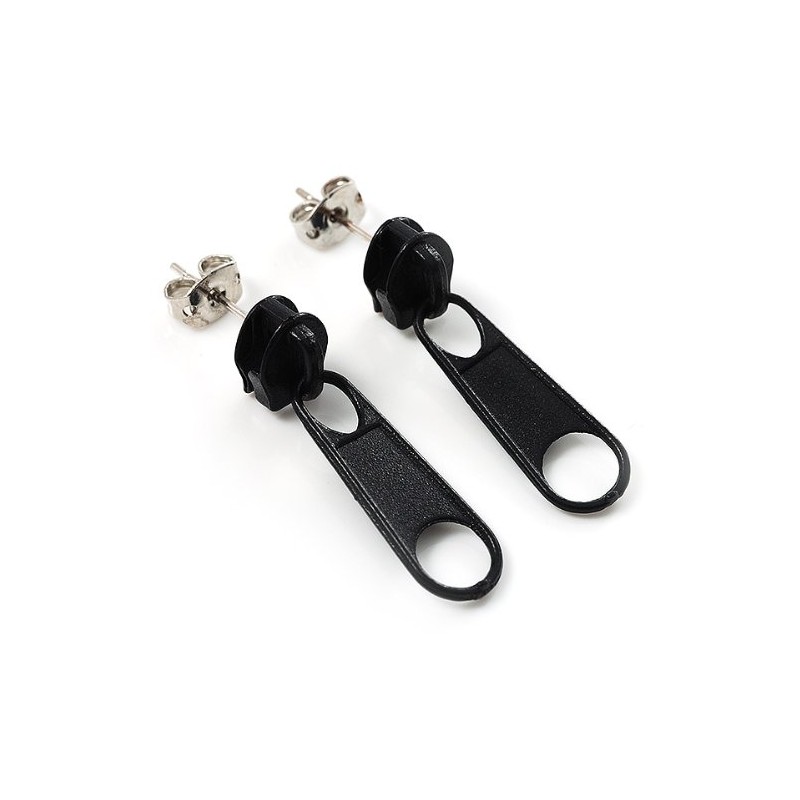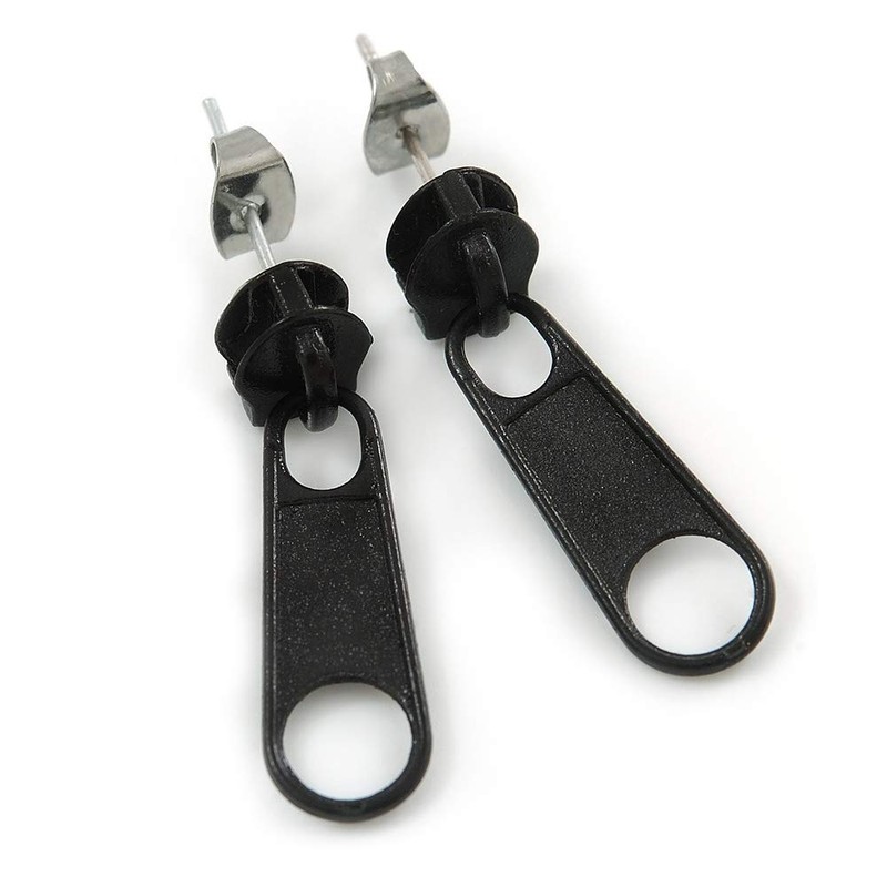 Black Coloured Metal Zipper Stud Earrings/25mm Long