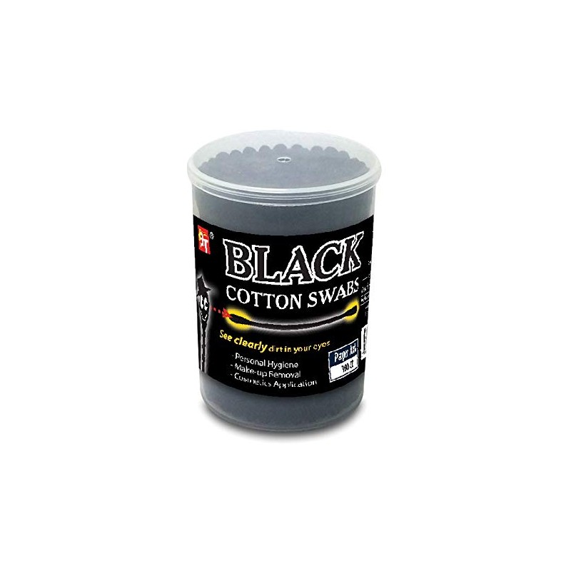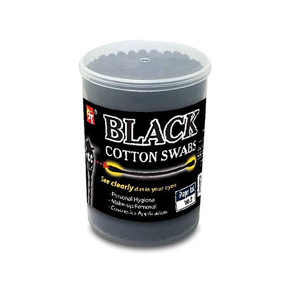 Black Cotton Swabs (100 ct) – Oval Shaped, Eco-Friendly, Gentle and Precise Swabs for Personal Care, Beauty, and Household Use