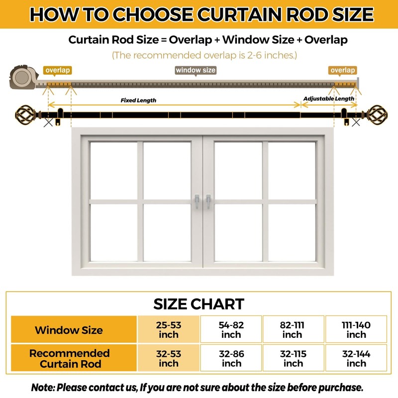2. TELESCOPING & SPLICING DESIGN: USFOOK curtain rods contain several segments that can be twist in to get alternative length and it can also be adjusted by sliding at the end, meet your different size needs. Any concern about the size before purchase, please kindly contact us. 3. Beautiful Appearance: USFOOK curtain rod with Floral design of finishes finial, suitable for various types of curtains, adding elegance to your living environments.