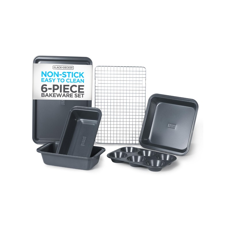 BLACK+DECKER 6-Piece Carbon Steel Bakeware Set, 0.4mm Carbon Steel Baking Pans Set with Ceramic Non-Stick Coating