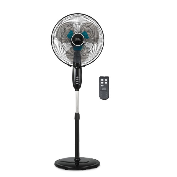 BLACK+DECKER 16" Dual Blade Standing Fan with Remote Control, Oscillating Floor Fan with 3 Speeds, Adjustable Height, 90-Degree Oscillation, 30-Degree Tilt, Shut-Off Timer, BFSD116B, Black