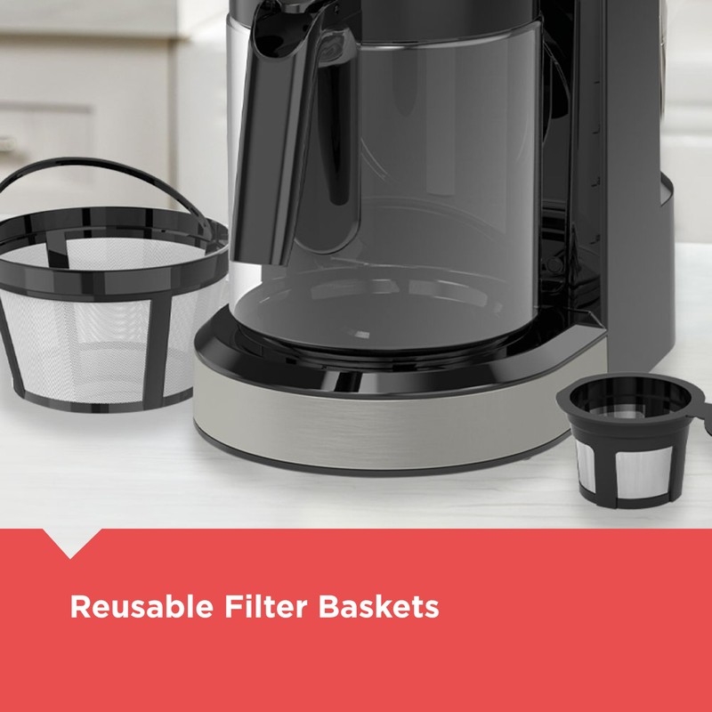 • Reusable filters: Includes reusable filters for both K-Cup and carafe brewing so you won’t have to invest on disposable filters, potentially saving you money in the long run. Simply rinse through after each use and it’s ready for next time.