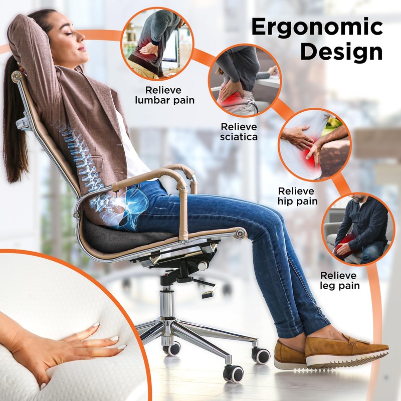 - Sciatica & Pain Relief – Whether for back pain, sciatica relief, or tailbone pressure, this memory foam seat cushion helps reduce discomfort, making sitting more enjoyable and supportive.