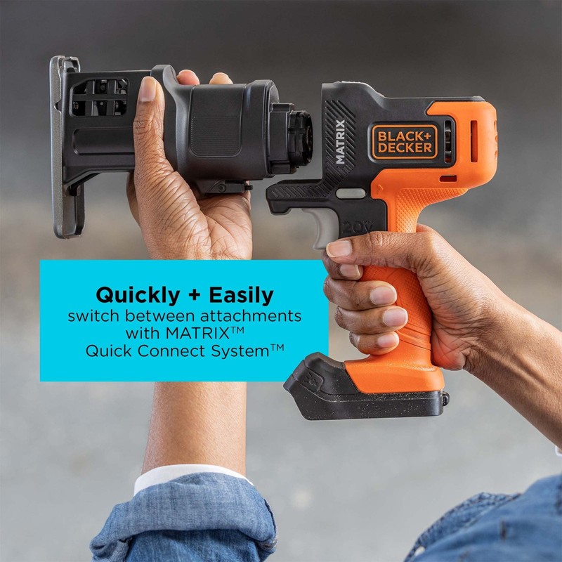 The BLACK+DECKER MATRIX Jig Saw Attachment is part of the MATRIX Quick Connect System. This attachment can be used with any Power Unit in the MATRIX System (Power Unit Sold Separately).