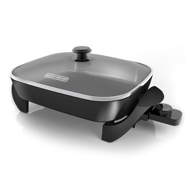 BLACK+DECKER Electric Skillet, Variable Temperature Control, Nonstick Cooking Surface, Dishwasher Safe, Tempered Glass Lid, 12"x15"