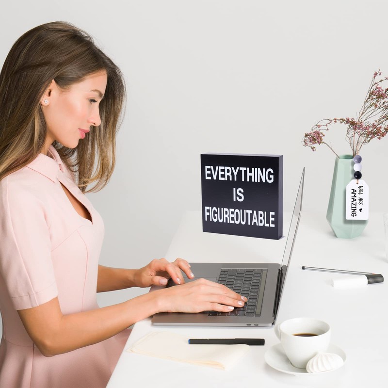 - DESK DECOR - Quality farmhouse desk decor for women, office decor for women, desk gifts for men or home office decor." EVERYTHING IS FIGUREOUTABLE", "YOU ARE AMAZING", inspirational saying can make you full of positive energy, more efficient, perform better and live a happier and healthier life.
