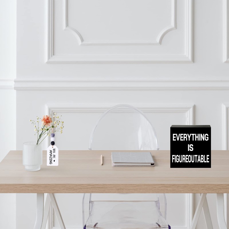 - OFFICE DECOR: Office desk decor includes a "everything is figureoutable" wooden box sign and a string of rustic modern "YOU ARE AMAZING" plaque, cute office decor, your daily inspirational quotes, perfect for home office decor, office desk decor, cubicle decor, office decorations for work.