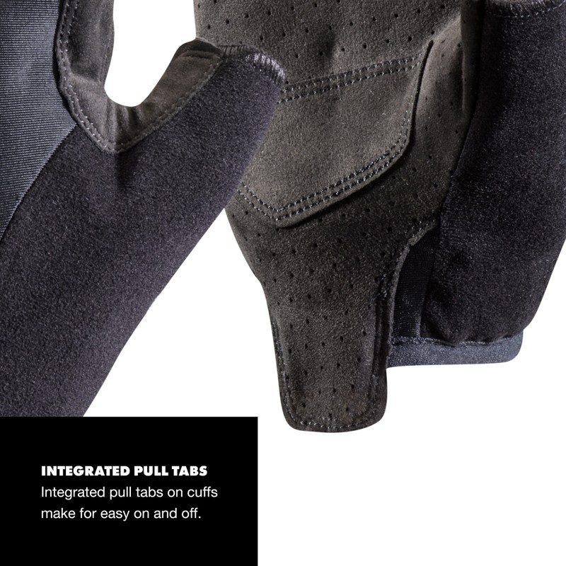 ハイキングやトレイルランニングに最適なハーフフィンガーグローブ。手首と指の付け根のタブを使うと着脱がスムーズです。