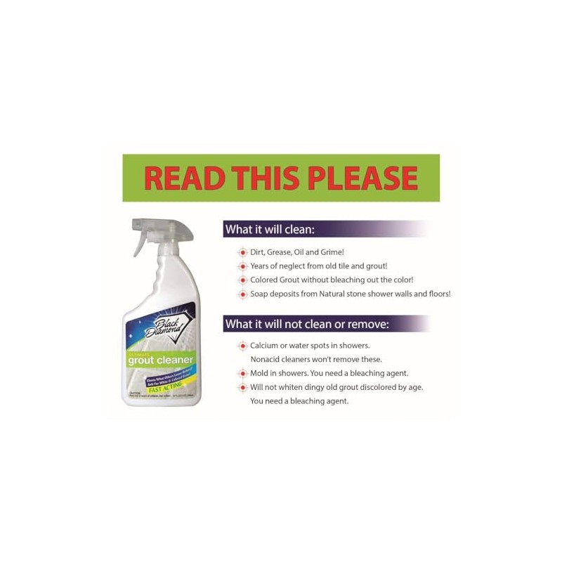 Black Diamond Stoneworks Black Diamond Ultimate Grout Cleaner: Best Cleaner for Tile,Ceramic,Porcelain, Marble Acid-Free Safe Deep Cleaner & Stain Remover for Even The Dirtiest Grout. (1-Quart/1-Brush)