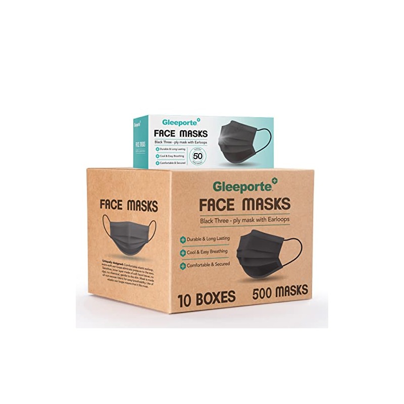 [Pack Of 500] Black Disposable Face Mask, 3-Ply Adult Masks, Facial Cover with Elastic Earloops For Home, Office, School, and Outdoors