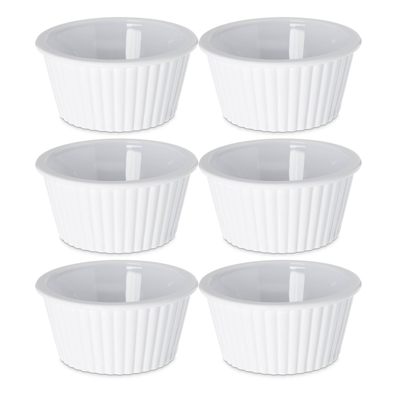 Black Duck Brand Set of 6 Plastic White Fluted Round Stackable 4 oz Ramekins - Perfect for Any Kitchen for Prepping Food or Serving Dishes! - Black Duck Brand!