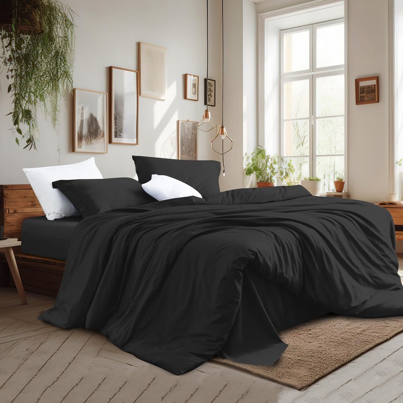 Black Duvet Cover Set King Size 100% Egyptian Cotton 3Pcs Home Bedding Set- 1 Duvet Cover with 2 Pillowcases, 400 Thread Count Super Soft Comforter Cover with Corner Ties(106x90 Inches, Black)