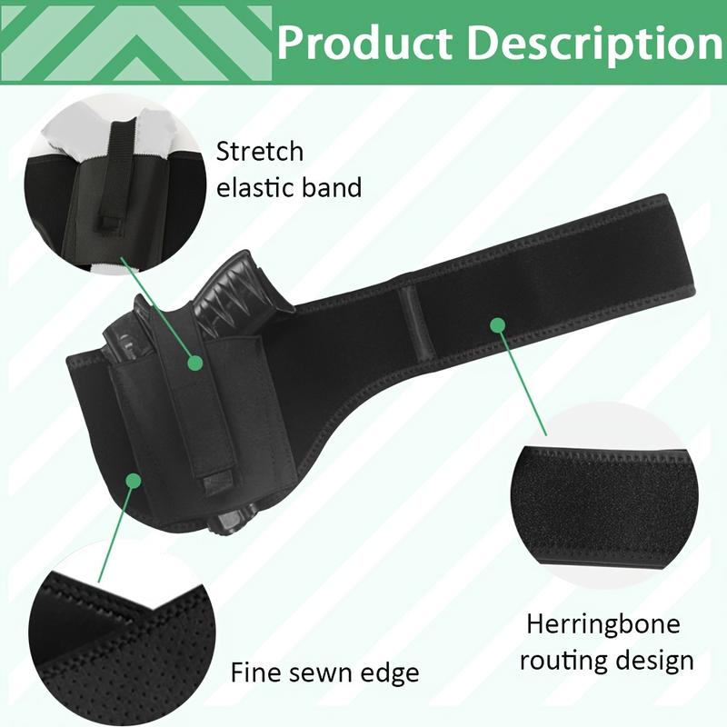 Black Elastic Belly Band Gun Holster: Right-Left Changeable, Hidden Wear for Men and Women - Hunting Accessories - Size: S