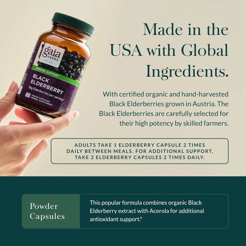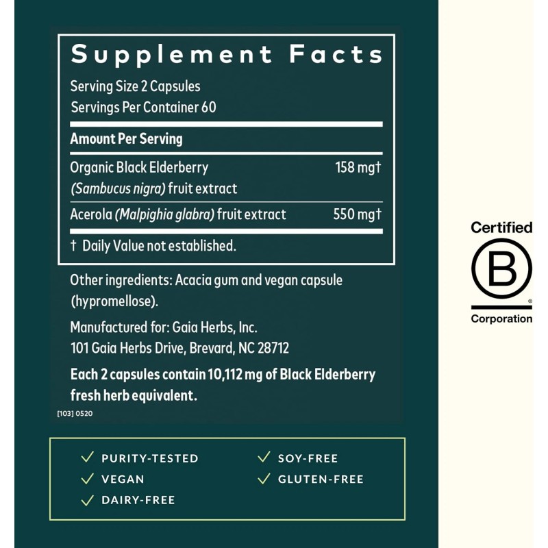 - Purity-Tested: Gaia Herbs Black Elderberry (Sambucus Nigra) is vegan, gluten-free & proudly made in NC, USA