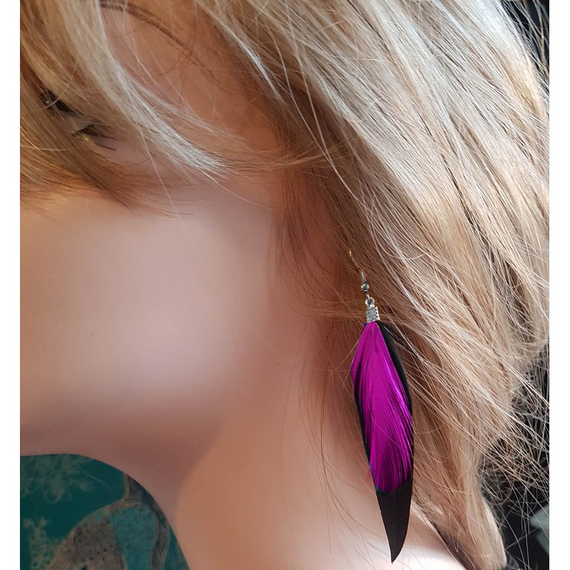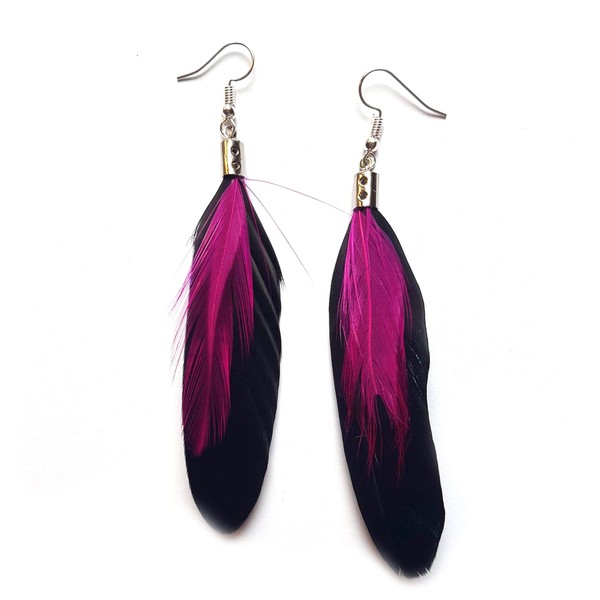 - Our hand crafted feather earrings have been made with a black goose feathers