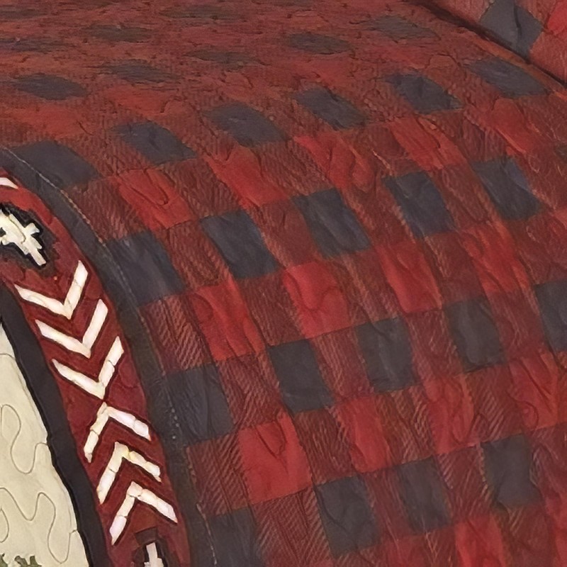 - A BLACK FOREST DECOR EXCLUSIVE: Fishing bears and buffalo plaid bring the ultimate outdoor look to this lightweight quilted cotton-poly bedding