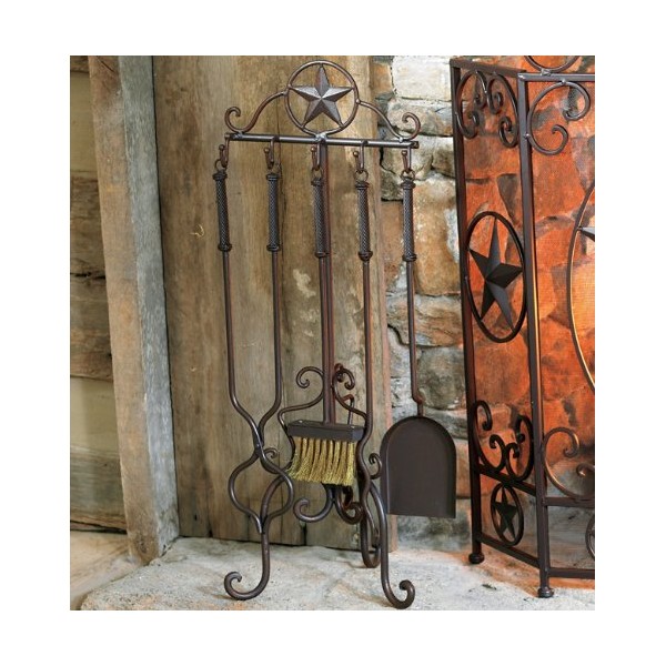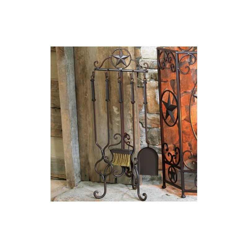 BLACK FOREST DECOR Lone Star Fireplace Tool Set (5 pcs) – Western Metal Hearth Tools with Stand, 10" W x 10.5" D x 28" H