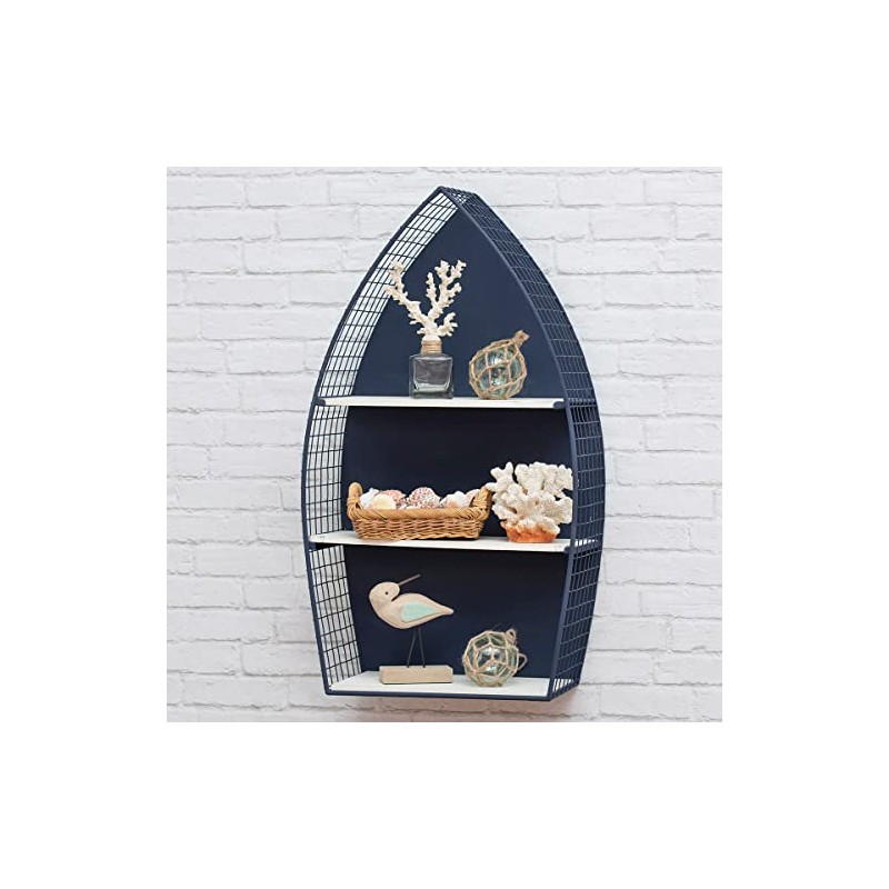 BLACK FOREST DECOR Nautical Blue Metal Boat Shelf
