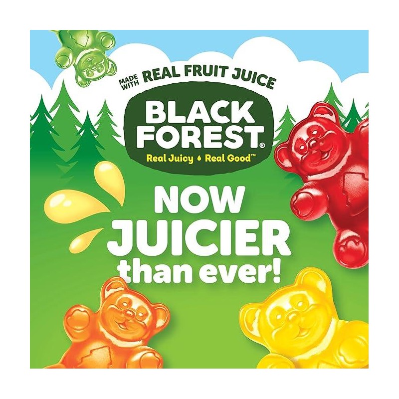 - FRUITY GOODNESS: Indulge in premium fruity treats with Black Forest products. Black Forest Gummy Bears are inspired by real fruit juice and made with colors and flavors from real sources