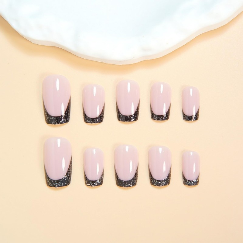 - Stylish Design: Our glitter press on nails feature an eye-catching black french tip design, perfect for adding a bold statement to your manicure. These fake nails are designed to elevate your look for any occasion