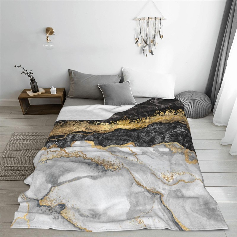 Black Gold Marble Printed Fleece Throw Flannel Blanket Soft Cozy Warm Decor Throws Lightweight Blankets for Couch Sofa Bed Chair 60x50