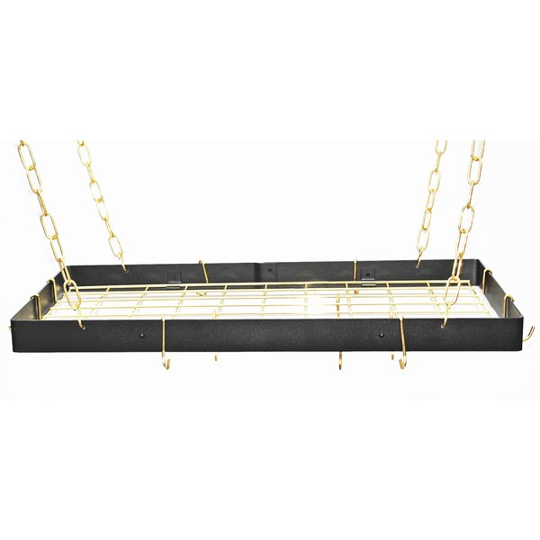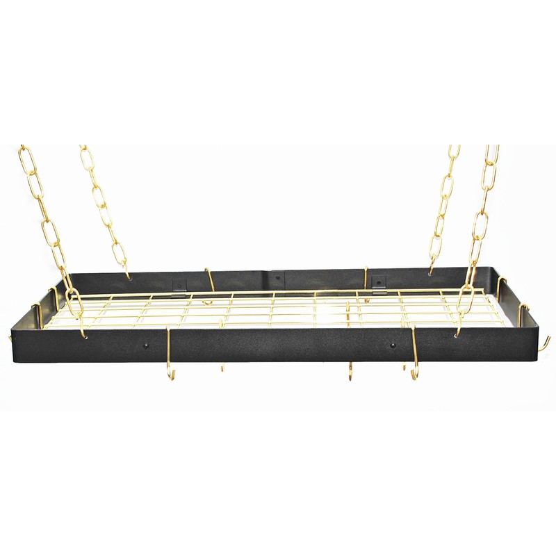 Rogar Rectangle Pot Rack - Black with Brass Grid