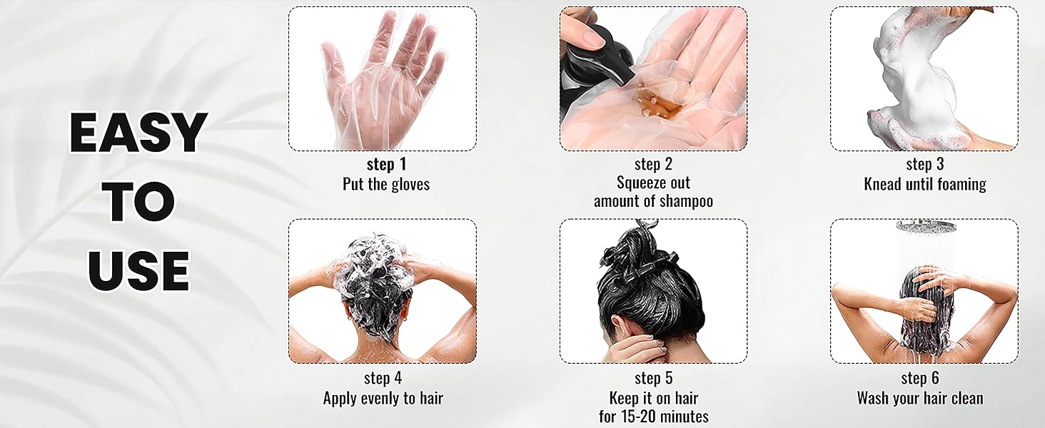 - Easy to Use & Time-Saving: Say goodbye to complicated procedures and uneven color results. Our New Hair Dye Shampoo simplifies your hair coloring routine. no bowl or brush required, just MIX, DYE, DRY — wear gloves, use it like regular shampoo. In just 15-20 minutes, transform your look with salon-quality results. leaving you free from the hassle of gray hair.