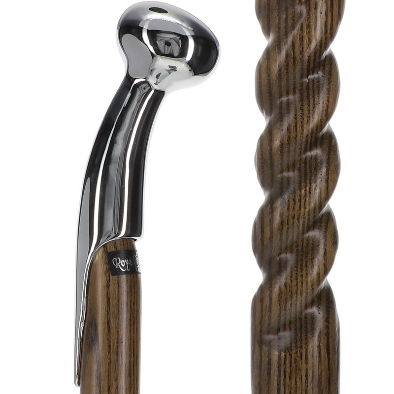 Royal RC Canes Premium Chrome-Plated Brass Hame Handle Walking Cane – Twisted Ash Wood Shaft 39” Long Cane for Men and Women