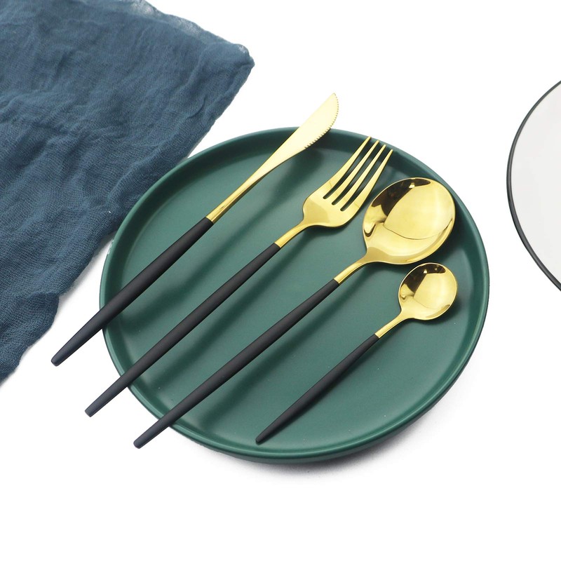 - { ELEGANT LOOKS } The shining mirror finish adds a unique grace and charm to this modern dinnerware set with knife, fork and spoon. The vacuum electroplating technology ensure there is no color fading or chipping keeping it shining