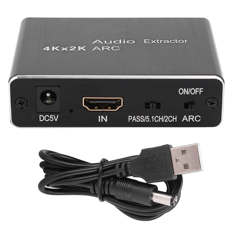 Black HDMI Audio Extractor Aluminium Alloy ARC 5.1 Splitter Optical Fiber SPDIF HDMI 1.4 Cable(Black )