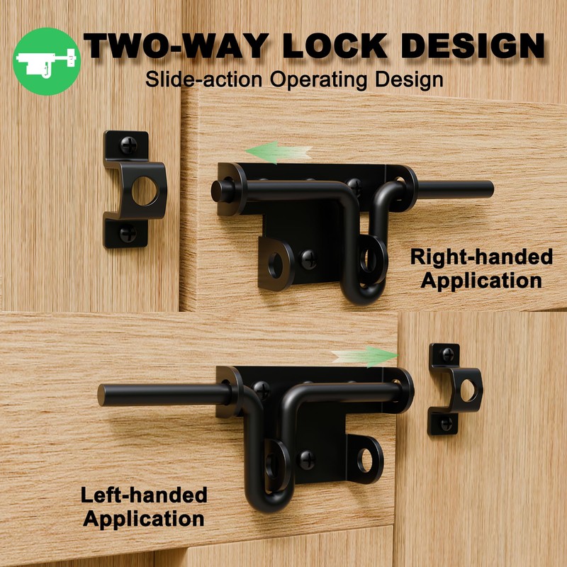 • 【Two-Way Lock Design】The sliding bolt door latch can be used with left or right swings. Designed for left or right swinging or sliding doors and gates. Convenient and flexible, suitable for all kinds of door lock replacement in every home.